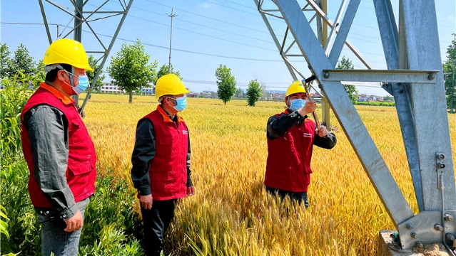5月31日,國網西華縣供電公司組織焦裕祿共產黨員服務隊深入聶堆鎮(zhèn)田間地頭開展供電隱患排查。