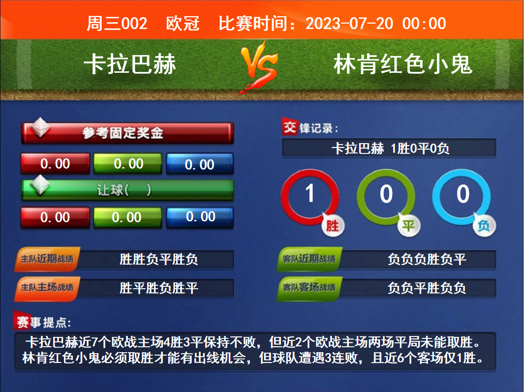 周三競彩足球強(qiáng)檔:卡拉巴赫掌主動(dòng)權(quán) 利勒切菜穩(wěn)定
