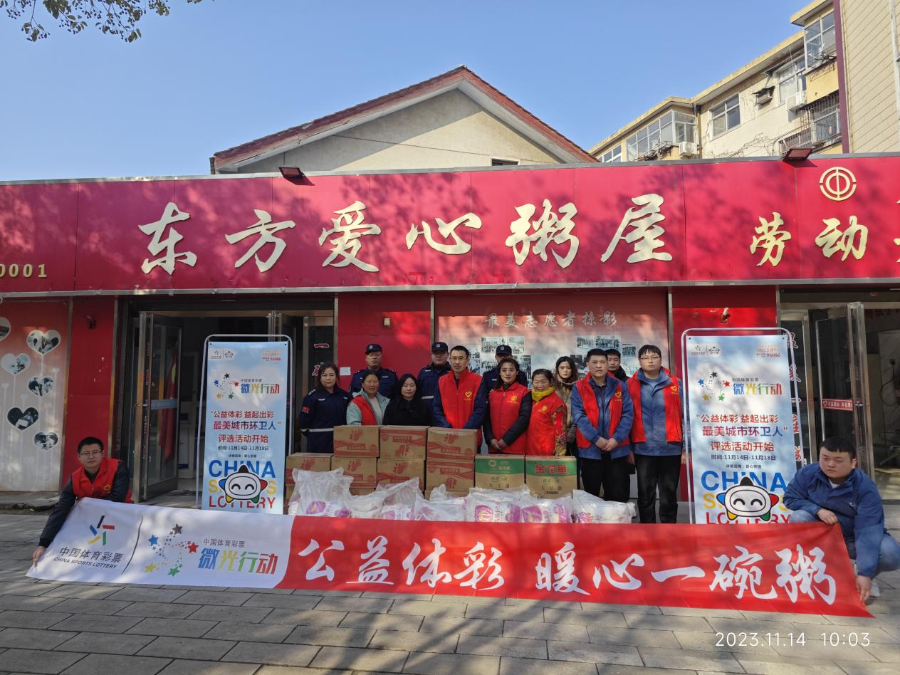 日前,周口體彩分中心志愿者帶著捐贈(zèng)物資來(lái)到“東方愛(ài)心粥屋”開(kāi)展了“微光行動(dòng)——公益體彩,暖心一碗粥”系列公益活動(dòng)。