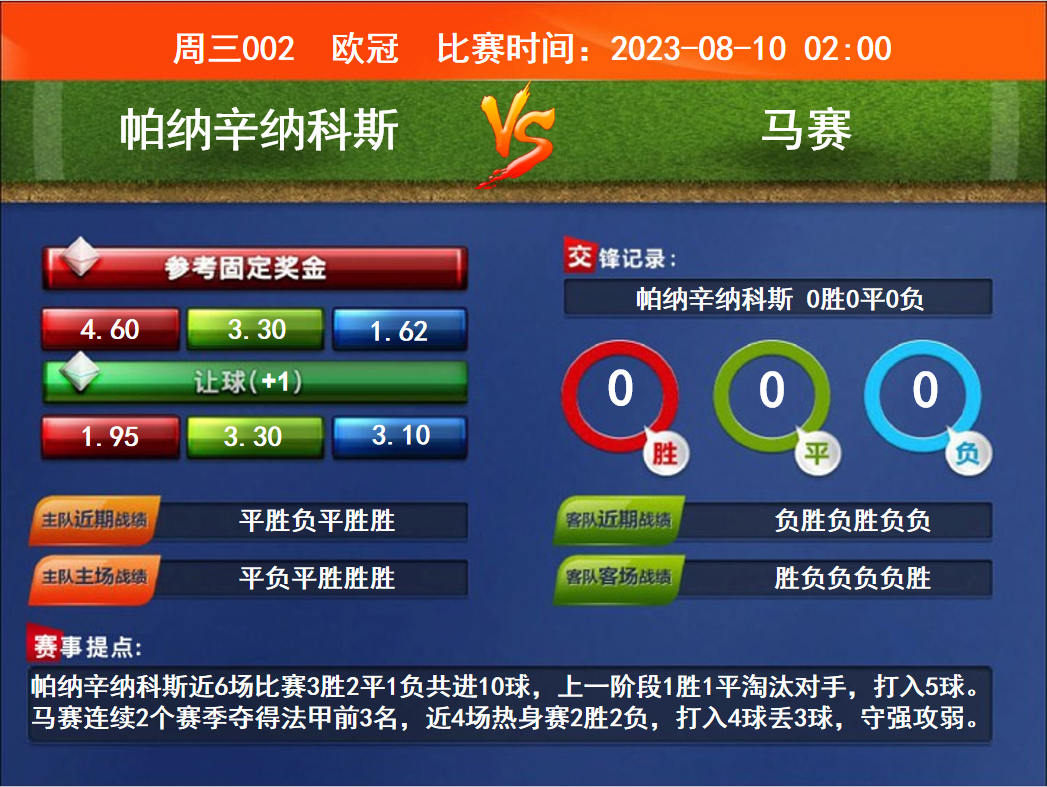 周三競彩足球強(qiáng)檔:馬賽戰(zhàn)績波動,帕爾梅拉斯占主動