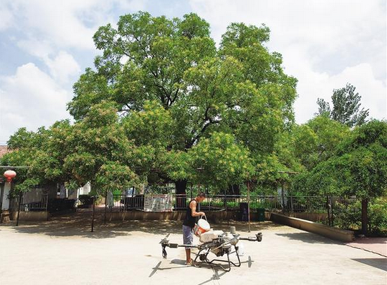 專業(yè)技術人員為植保無人機添加農藥。鄲城縣寧平鎮(zhèn)擁有多株百年以上樹齡的古樹,這些“綠色活化石”承載著當地的歷史記憶。