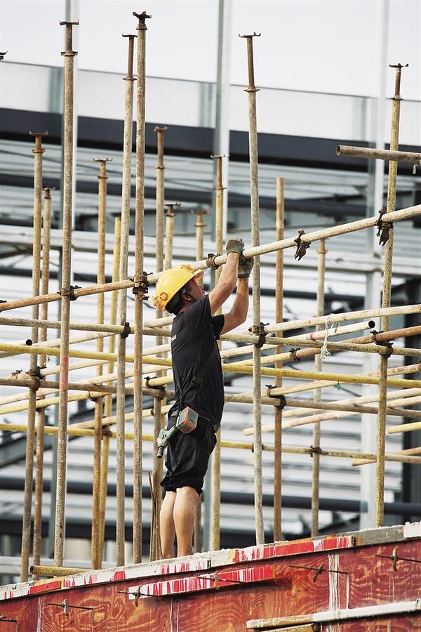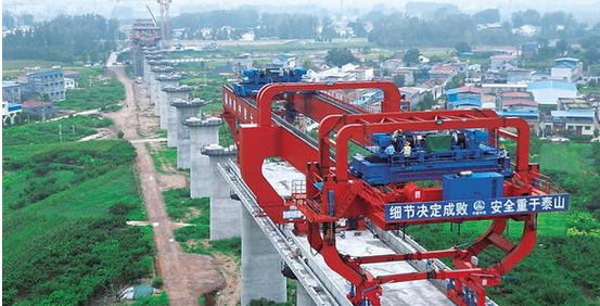 8月10日上午,中鐵七局工人正在賈魯河畔的平漯周高鐵吊裝設(shè)備上作業(yè)。據(jù)了解,截至目前,由中鐵七局承建的周口境內(nèi)平漯周高鐵已經(jīng)架設(shè)箱梁近8公里,從東向西“逼近”賈魯河。