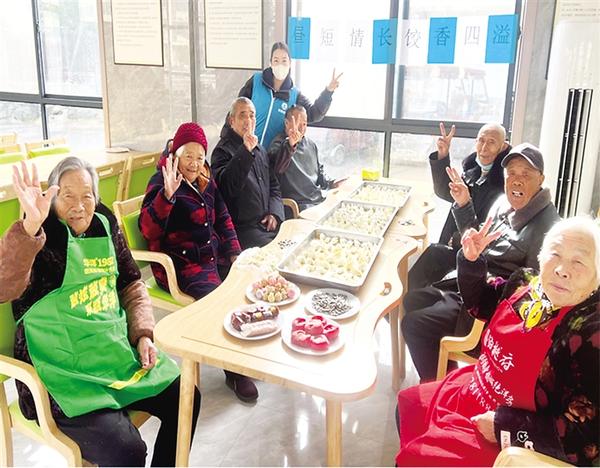 12月20日,在淮陽區(qū)第一養(yǎng)老服務(wù)中心,生活在這里的老人們和社工包完餃子后露出開心的笑容。