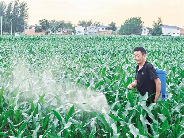 連日來(lái),我市持續(xù)出現(xiàn)高溫天氣,為防治病蟲害,確保秋糧豐收,沈丘縣積極引導(dǎo)群眾加強(qiáng)田間管理。圖為卞路口鄉(xiāng)一名群眾為玉米噴灑農(nóng)藥。