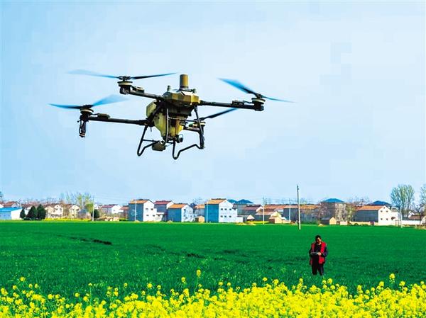近日,在鹿邑縣玄武鎮(zhèn)解樓行政村的麥田上,一架無人機正在開展精準飛防作業(yè)。時值小麥抽穗期,當地農業(yè)部門組織專業(yè)化防治隊伍,采用“一噴三防”技術,通過無人機對小麥實施病蟲害防治、葉面肥噴施等綜合管理。