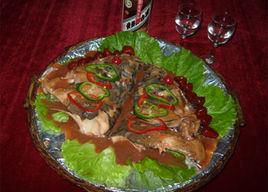 沈丘留福的特產(chǎn)水晶肘子其肘子:皮厚、筋多、膠質(zhì)重、瘦肉多,帶皮烹制,肥而不膩。該特產(chǎn)數(shù)年前就被沈丘縣志記載,聞名當(dāng)?shù)財(cái)?shù)百里。沈丘留福水晶肘子肉瓷實(shí)、皮薄肉嫩,營養(yǎng)也特別豐富。輔料的選用也非常精細(xì),產(chǎn)地固定。制作工藝是非常復(fù)雜的,買來的肘子要經(jīng)過水泡、去毛、剔骨、焯胚、碼鍋、醬制、出鍋、澆汁等數(shù)道工序,歷時(shí)6個多小時(shí)。……[詳細(xì)]
