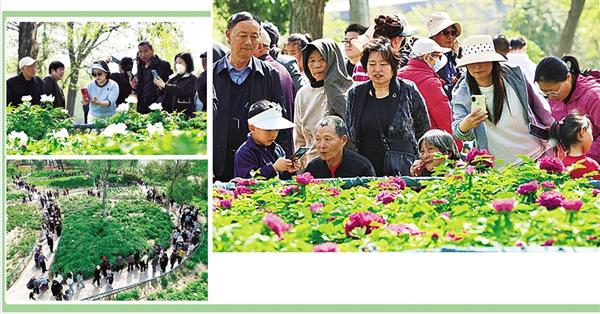 4月6日,周口植物園的牡丹花競相開放,吸引了眾多市民和游客前來踏青賞花。
