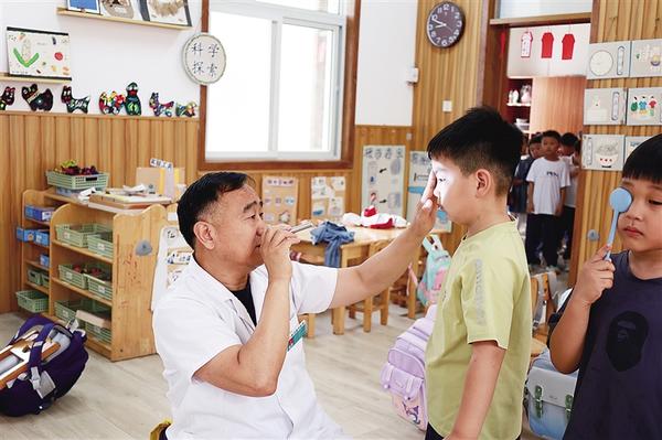 5月19日,扶溝縣中醫(yī)院眼科的醫(yī)護(hù)人員在扶溝縣直幼兒園為小朋友檢查視力。近日,為迎接即將到來(lái)的第30個(gè)全國(guó)“愛(ài)眼日”,扶溝縣多家幼兒園開(kāi)展“愛(ài)眼護(hù)眼從小做起”主題活動(dòng),邀請(qǐng)醫(yī)務(wù)人員到校講解眼科知識(shí)和用眼衛(wèi)生常識(shí),并為小朋友進(jìn)行視力檢查,引導(dǎo)其養(yǎng)成正確用眼習(xí)慣。