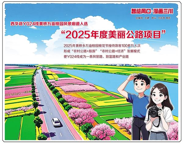 中國公路學(xué)會近日公布“2025年度美麗公路項(xiàng)目”名單,西華縣Y024線黃橋萬畝桃園風(fēng)景廊道成功入選。