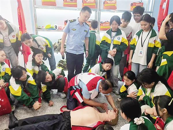 5月12日,沈丘縣風(fēng)華學(xué)校的學(xué)生觀看心肺復(fù)蘇術(shù)操作演示。當(dāng)日是第17個全國防災(zāi)減災(zāi)日,主題是“人人講安全、個個會應(yīng)急——排查身邊災(zāi)害隱患”,5月12日至5月18日為防災(zāi)減災(zāi)宣傳周。