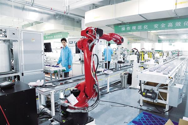 位于川匯區(qū)的河南宇虹物聯(lián)網(wǎng)科技有限公司年產(chǎn)100萬塊熱力智能傳感器生產(chǎn)項(xiàng)目,總投資1.5億元,主要生產(chǎn)智能超聲波熱量表。目前,該項(xiàng)目已投產(chǎn)運(yùn)營,滿產(chǎn)后預(yù)計(jì)年產(chǎn)值2.6億元,實(shí)現(xiàn)年利稅3600萬元。圖為工人在生產(chǎn)線上操作機(jī)器人加工產(chǎn)品。