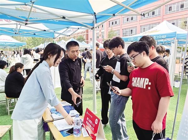 用人單位代表向求職學(xué)生介紹企業(yè)情況。5月15日,周口理工職業(yè)學(xué)院舉辦2025屆畢業(yè)生“雙選會”。活動中,求職學(xué)生積極與用人單位代表溝通交流、提交個人簡歷。用人單位代表耐心解答疑問,介紹公司發(fā)展前景、崗位需求及福利待遇等情況,積極招攬優(yōu)秀人才。