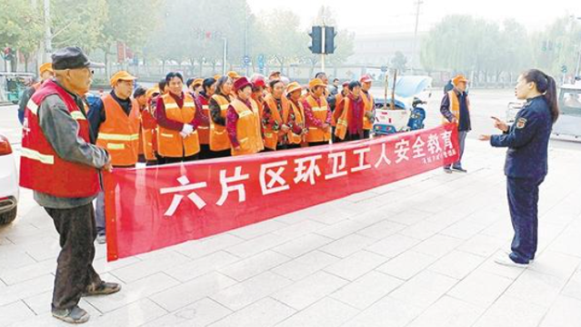 項城市城管局六片區(qū)負責(zé)人為環(huán)衛(wèi)工人講解安全知識