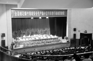 會議指出,前不久發(fā)生的6.18事故教訓(xùn)異常深刻。近期,市委、市政府多次召開安全生產(chǎn)會議,下發(fā)5次明傳電報,市委書記徐光、市長岳文海都作了重要講話,提出了明確要求。因此,全縣干群必須切實認清形勢,提高認識,切實增強安全生產(chǎn)監(jiān)管工作的危機感、緊迫感、責任感。開展煙花爆竹領(lǐng)域安全生產(chǎn)集中宣傳排查行動是發(fā)展所需。經(jīng)濟社會發(fā)展要科學(xué)發(fā)展,科學(xué)發(fā)展首先是安全發(fā)展。抓安全就是抓民生。生命健康是人擁有的最寶貴財富,沒有了生命,一切美好生活,都化為烏有。要對生命心存敬畏,把煙花爆竹安全生產(chǎn)放到一個新的高度上來認識,時刻繃緊煙花爆竹安全生產(chǎn)這根弦。