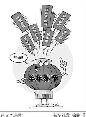 剛剛過去的羊年春節(jié)喜氣洋洋,看點多多:延續(xù)反腐高壓態(tài)勢,反腐相聲上了春晚,反腐動漫短片受熱捧,請客送禮的少了,清風正氣得到弘揚;從“小眾試水”到“全民狂歡”,網(wǎng)絡紅包成為羊年春節(jié)的“標簽”,為傳統(tǒng)年俗注入新活力;在這個春節(jié),人們還發(fā)現(xiàn),異地團圓多了,旅游“爆棚”了,霧霾“爆表”了……