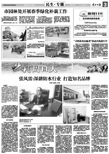 20年前,年少的他,懷揣著好奇,從 “防水之鄉(xiāng)”項(xiàng)城走出,奔向夢寐以求的大都市。在那里,繁重的勞動和殘酷的環(huán)境差一點(diǎn)擊碎他年輕的夢。然而,要強(qiáng)的他,憑借機(jī)靈和勤奮,在北京防水行業(yè)中,打拼出一個(gè)屬于自己的新天地。他叫張風(fēng)雷,1977年出生于項(xiàng)城市三店鎮(zhèn)張寨村。2月初,“出彩周口人”采訪團(tuán)的記者來到北京,在百創(chuàng)防水企業(yè)集團(tuán)總部,分享了他創(chuàng)業(yè)道路上的苦與樂,聆聽了他創(chuàng)業(yè)道路上的光榮和夢想。