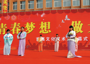 該校把特色教育作為發(fā)展的名片,推出“一班一品一特色”活動。學(xué)校建立以班級為單位的社團組織,并細分為體育類、舞蹈類、樂器類、美術(shù)類四大類別,共70個社團。比如:美工社團制作漢服進行表演,每一次都讓在場的觀眾潸然淚下,為自己是一個漢唐中華子孫而驕傲,為著漢唐服裝而自豪。學(xué)校出版了《求真大課堂》《走在成長的路上》《花季無悔》《中學(xué)生科技創(chuàng)作》《班主任德育思想錄》《國學(xué)之蘊》《家和萬事興》《共創(chuàng)一個夢 和韻文昌之家校共建》《“文昌杯”文明我先行 共筑一個夢》主題征文作文選等校本教材。為豐富校園文化生活,學(xué)校邀請中國政法大學(xué)的霍登科,歷史文化學(xué)者王少清,青少年心理教育專家張海選、萬禮彬,周口市中心醫(yī)院婦產(chǎn)科主任楊莉,河南國學(xué)院的施柳貞、王福琪、楊茹梅以及國內(nèi)外優(yōu)秀大學(xué)生對學(xué)生進行國學(xué)誦讀和教育、演講比賽、法制教育、夢想目標(biāo)教育、青春期心理和生理教育等活動。在該校首屆“做大成教育 展青春夢想”文化藝術(shù)節(jié)活動中,有一項活動叫珍藏十年“心愿瓶”,當(dāng)滿載學(xué)生夢想的心愿瓶準(zhǔn)備珍藏時,晴天出現(xiàn)了彩虹,讓在場的領(lǐng)導(dǎo)、家長、學(xué)生很驚嘆,說文昌中學(xué)的學(xué)生目標(biāo)遠大,定有大才出現(xiàn)。這些有意義的活動對廣大未成年人的身心健康起到了很好的促進作用。