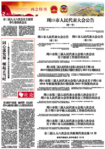 | 周口市第三屆人民代表大會第六次會議關(guān)于周口市 2014年財(cái)政預(yù)算執(zhí)行情況和2015年預(yù)算的決議 | |