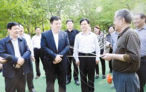 徐光一行又先后深入開(kāi)發(fā)區(qū)人民廣場(chǎng)、星龍華緣健身場(chǎng)所、融輝城健身活動(dòng)中心、商水縣夕陽(yáng)紅健身園、周口市體育中心等地實(shí)地察看各項(xiàng)體育健身運(yùn)動(dòng)設(shè)施建設(shè)進(jìn)展情況,聽(tīng)取籌備工作情況匯報(bào),了解場(chǎng)館布展和開(kāi)幕式準(zhǔn)備情況??吹揭患湫碌慕∩磉\(yùn)動(dòng)器材、一塊塊新近完善提升的健身場(chǎng)地,特別是正在進(jìn)行健身運(yùn)動(dòng)群眾的一張張笑臉,徐光滿(mǎn)意地點(diǎn)點(diǎn)頭,并來(lái)到市民中間,與大家親切交談,和正在健身的市民打乒乓球、試用健身器材,共同分享健身帶來(lái)的樂(lè)趣。徐光說(shuō),我市作為省十二屆“老健會(huì)”的承辦方,在時(shí)間緊、任務(wù)重、標(biāo)準(zhǔn)高、壓力大的情況下,各相關(guān)單位按照市委、市政府的安排部署,講政治、顧大局、做貢獻(xiàn),做了大量卓有成效的工作,可以說(shuō)我市的全民健身場(chǎng)所功能得到了完善、形象得到了提升,市民參與健身活動(dòng)的途徑和選擇更加方便多樣,參與健身的熱情更加高漲,市委對(duì)大家的工作是滿(mǎn)意的。但是,我們還要看到,我市的全民健身工作與群眾的需求還存在一定差距,必須進(jìn)一步加大投入力度,建設(shè)好、管理好、使用好相關(guān)體育健身設(shè)施,使之能夠更好地滿(mǎn)足群眾健身需求,服務(wù)百姓生活。