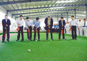 本報(bào)訊 (記者 李鳳霞 宋馨 沈湛 文/圖) 5月5日上午,“中國體育彩票杯”河南省第十二屆老年人體育健身大會門球交流活動在周口體育中心門球館舉行。省老年體協(xié)主席馬憲章,省體育局局長張文深,市委書記、市人大常委會主任徐光,市長劉繼標(biāo),正市長級干部李紹彬,市人大常委會副主任、市老年體協(xié)主席游保峰,省老年體協(xié)副主席王瑋等領(lǐng)導(dǎo)共同為活動開球(如圖)。