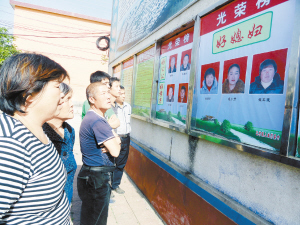 上圖 昨日上午,商水縣巴村鎮(zhèn)上城村村民正在圍觀“好媳婦”、“好婆婆”、“好孝子”光榮榜。據(jù)了解,被評(píng)為“全國(guó)文明村”、“河南省生態(tài)文明村”的上城村,已連續(xù)3年開(kāi)展“好媳婦”、“好婆婆”、“好孝子”評(píng)選活動(dòng)。(喬連軍 攝)