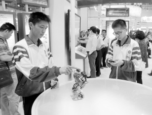 全國教育信息化應用展覽在青島舉行 5月24日,兩名中學生在展覽上體驗操作機器人。由教育部、聯(lián)合國教科文組織、中國聯(lián)合國教科文組織全委會主辦,青島市人民政府承辦的全國教育信息化應用展覽,于5月23日至25日在青島舉辦。新華社記者 張旭東 攝