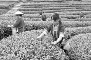5月25日,茶農(nóng)在廣西三江侗族自治縣八江鎮(zhèn)的茶園里采茶。時下正是夏茶盛產(chǎn)時節(jié),廣西三江侗族自治縣茶農(nóng)利用雨后晴朗天氣抓緊采茶。新華社發(fā)