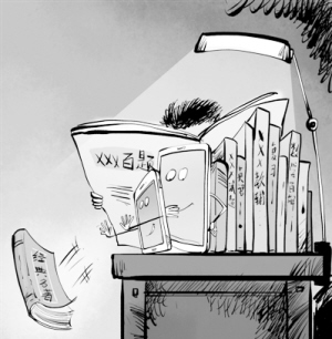 記者調(diào)查發(fā)現(xiàn),在繁重的課業(yè)負擔(dān)下,不少初高中學(xué)生所讀書籍越來越單一,教輔書占了絕大比例。智能手機的普及,各類社交平臺的出現(xiàn),更是讓學(xué)生沉溺于淺閱讀。相反,拿起名著、對話經(jīng)典等深層次閱讀的情況,卻不容樂觀。這正是: