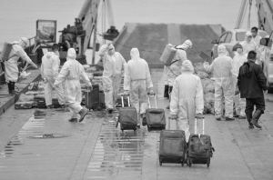 9時(shí),交通運(yùn)輸部部長(zhǎng)楊傳堂宣布哀悼活動(dòng)開(kāi)始。在沉船救援現(xiàn)場(chǎng)仍在參與救援的所有人員停下手上工作,脫帽佇立,面向遇難船舶默哀,包括數(shù)十家媒體新聞工作者在內(nèi)的其他在場(chǎng)人員紛紛低頭,肅立致哀。同時(shí),停泊在附近水域的所有船舶拉響鳴笛,途經(jīng)沉船救援現(xiàn)場(chǎng)的船只也放慢速度,鳴響汽笛。