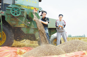 付井鎮(zhèn)腰李莊村民李程飛正在展示喜獲豐收的“周黑麥一號”黑小麥。黑小麥屬優(yōu)質專用型小麥品種,市場價格常年比普通小麥高一到兩倍。今年,全縣黑小麥種植面積達到1萬余畝,每畝可增收700元以上。(王祥宇 攝)