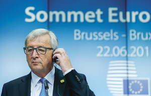 6月22日,在比利時(shí)布魯塞爾的歐盟總部,歐盟委員會(huì)主席容克在歐元區(qū)領(lǐng)導(dǎo)人緊急峰會(huì)后出席新聞發(fā)布會(huì)。 歐洲理事會(huì)主席圖斯克在會(huì)后新聞發(fā)布會(huì)上說(shuō),希臘提交的新版改革方案是“積極的一步”,歐元集團(tuán)將于24日完成對(duì)新方案的評(píng)估。