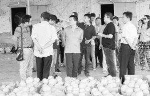 在曹里鄉(xiāng)綠橄欖蔬菜種植園區(qū),鄧錦宏詳細(xì)了解了園區(qū)種植瓜菜的品種結(jié)構(gòu)和種植面積等。當(dāng)了解到雖然該園區(qū)種植的瓜菜品質(zhì)優(yōu)良、價格實惠,但是由于缺乏信息資源,產(chǎn)品只能銷售到周邊城市,最遠(yuǎn)才銷到武漢的實際情況后,鄧錦宏表示,一定要幫助農(nóng)民把優(yōu)質(zhì)的瓜菜產(chǎn)品通過一畝田網(wǎng)上交易平臺賣到北京、上海等大城市,讓全國果蔬消費的高端市場進(jìn)一步了解扶溝豐富的果蔬資源。在曹里鄉(xiāng)樊家蔬菜種植園區(qū),鄧錦宏一行品嘗了九九瑞紅、綠寶、羊角脆等高端瓜果,并就共建市場、暢通信息渠道、后期附加服務(wù)等與瓜菜種植戶交換意見。