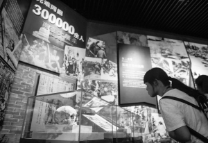 ?、?nbsp;7月12日,觀眾在中國(guó)人民抗日戰(zhàn)爭(zhēng)紀(jì)念館觀看“南京大屠殺”的相關(guān)史料。