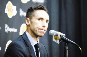 當(dāng)?shù)貢r間3月24日,納什在新聞發(fā)布會上。當(dāng)日,洛杉磯湖人隊球員斯蒂夫·納什召開新聞發(fā)布會,就退役一事回答記者提問。納什于21日通過網(wǎng)絡(luò)宣布了自己退役的消息。新華社發(fā)